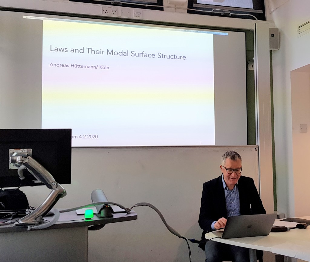 For the second FraMEPhys meeting of 2020, Prof. Dr. Andreas Hüttemann (University of Cologne) gave a talk on “Laws and their Modal Surface Structure” at the University of Birmingham (Muirhead Tower, 427).