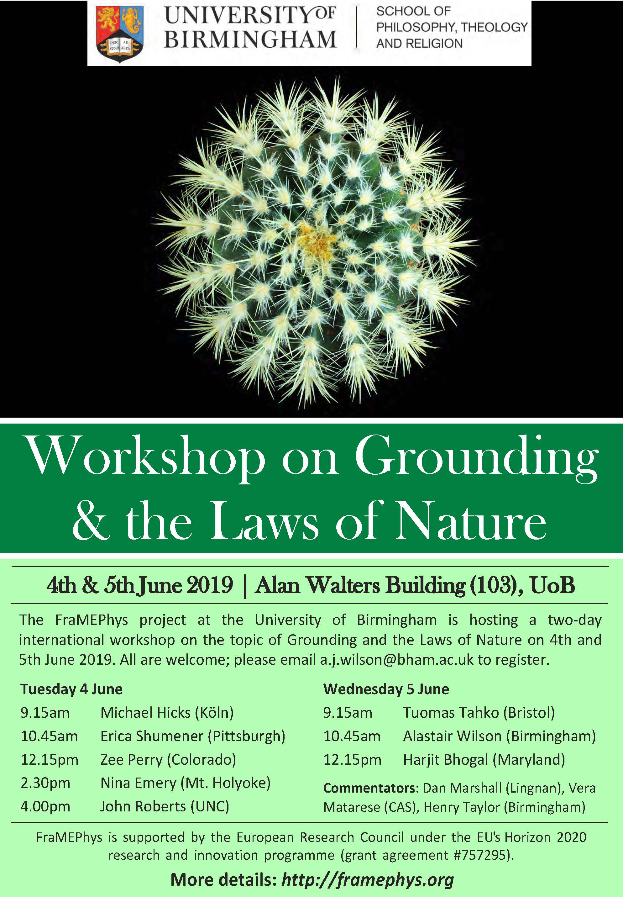 On 3 April 2019, the FraMEPhys project hosted a one-day workshop on Levels of Explanation at the University of Birmingham. Any queries concerning this event can be directed to k.e.robertson@bham.ac.uk .