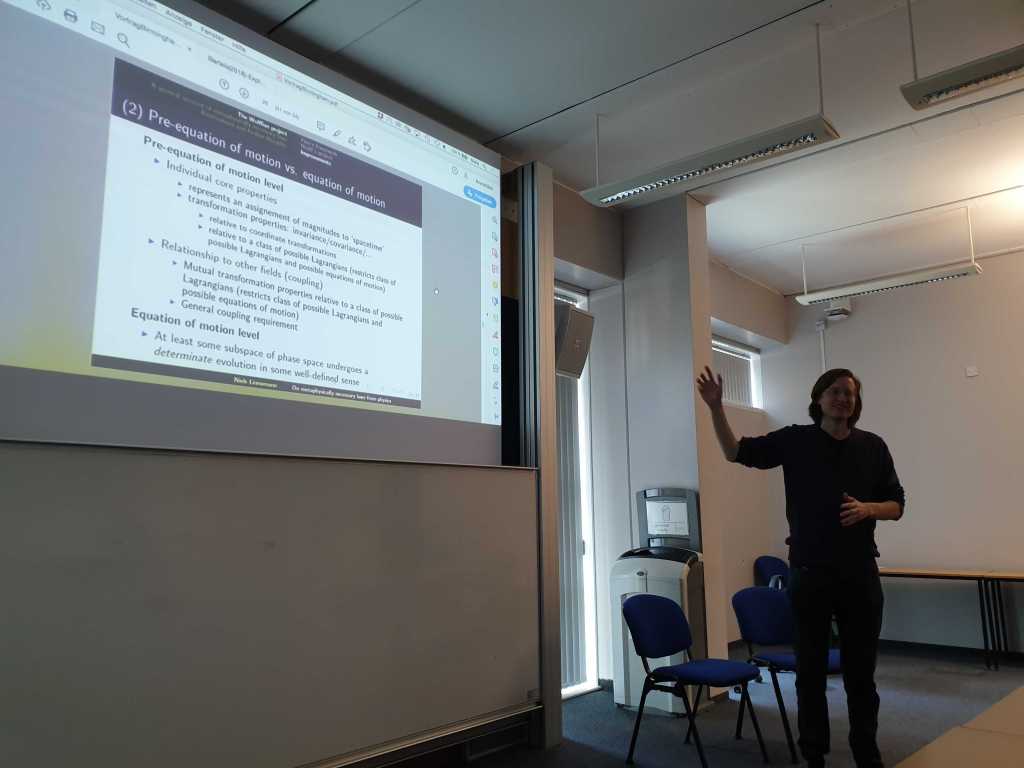 Abstract: How does metaphysical necessity relate to the modal force often associated with natural laws (natural necessity)? Fine (2002) argues that natural necessity can neither be obtained from metaphysical necessity via forms of restriction nor of relativization — and therefore pleads for modal pluralism concerning natural and metaphysical necessity. Wolff (2013) aims at providing illustrative examples in support of applying Fine’s view to the laws of nature with specific recourse to the laws of physics: On the one hand, Wolff takes it that equations of motion can count as examples of physical laws that are only naturally but not metaphysically necessary. On the other hand, Wolff argues that a certain conservation law obtainable via Noether’s second theorem is an instance of a metaphysically necessary physical law. I show how Wolff’s example for a putatively metaphysically necessary conservation law fails but argue that so-called topological currents can nevertheless count as metaphysically necessary conservation laws carrying physical content. I conclude with a remark on employing physics to answer questions in metaphysics.