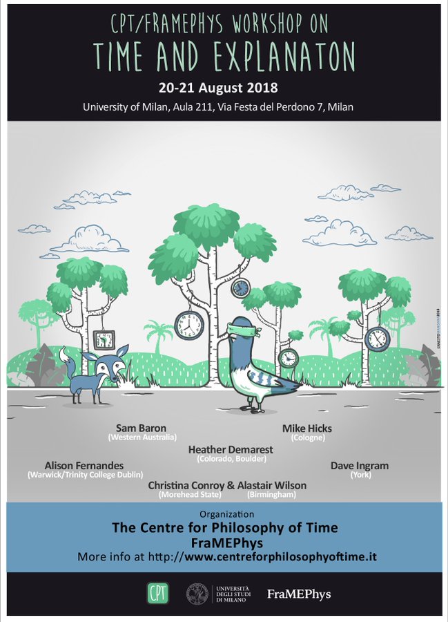 In August 2018, the Centre for Philosophy of Time at the University of Milan and the FraMEPhys project at the University of Birmingham co-hosted a two-day workshop on Time and Explanation. Here’s the poster.